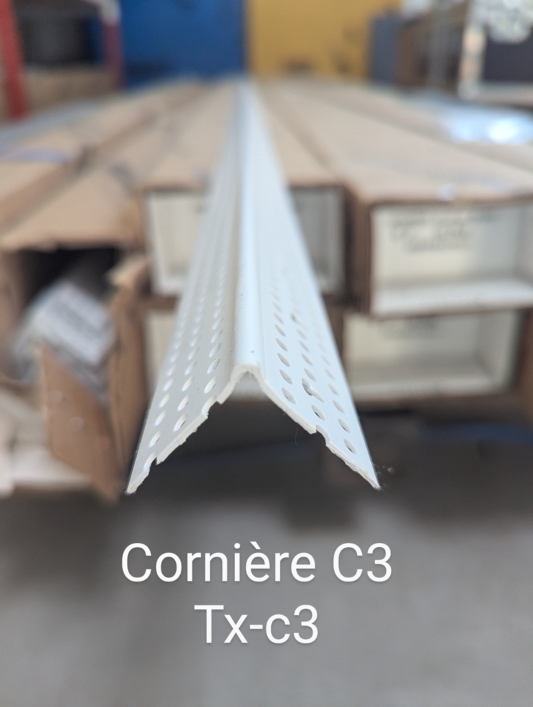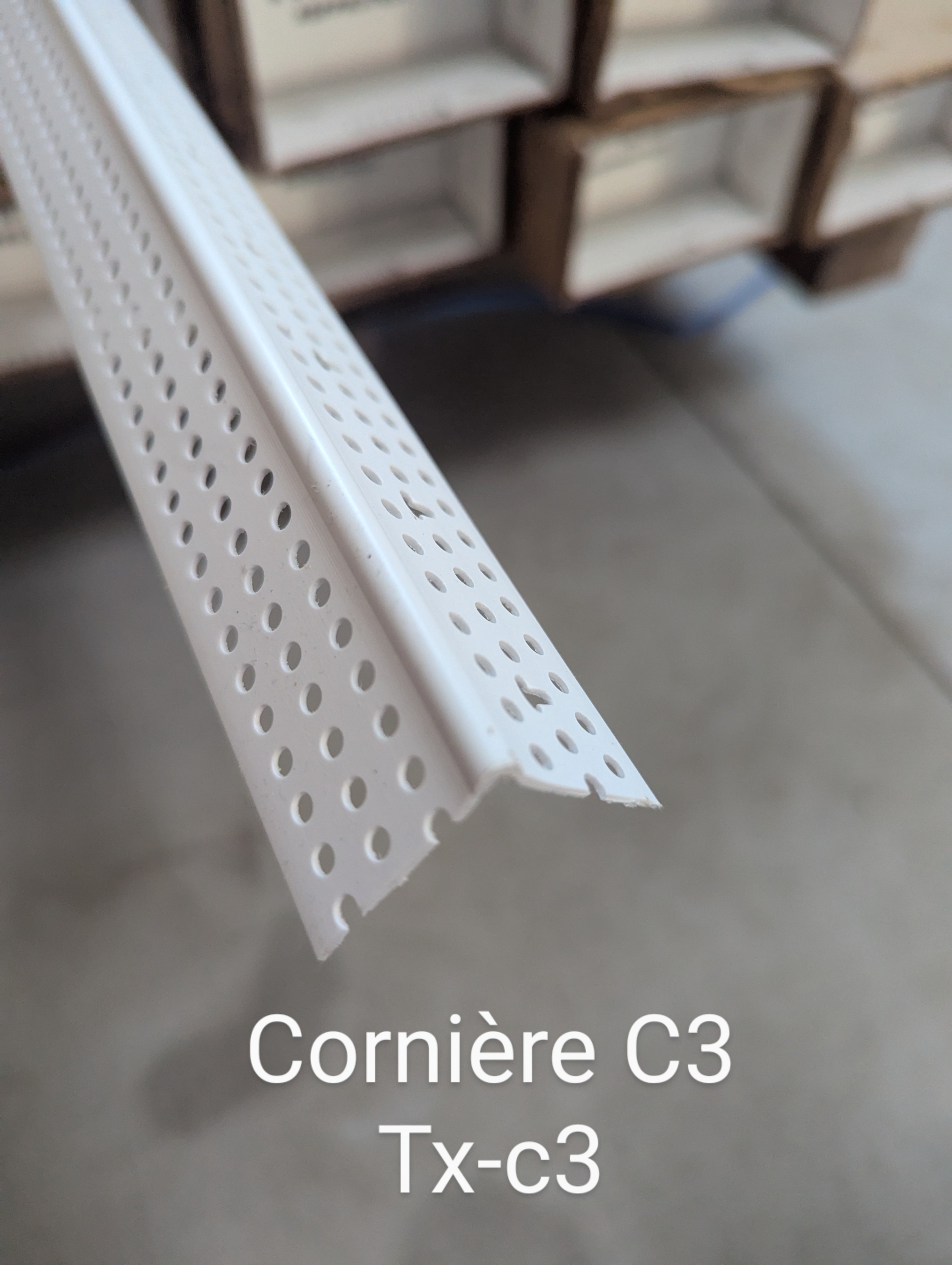 TX-C3 : Cornière plastique pour finition des angles sortants à 90°. petit nez de finition 3mm. dimension : 3,1 x 3,1 cm x 250 cm