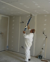 le kit collage bazouka permet de coller les bandes à joint beaucoup plus vite qu’à la main et sans monter sur un escabeau.